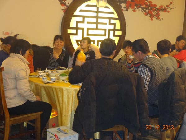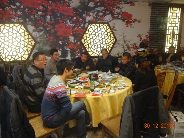 2013-12-30中午,公司全體人員進(jìn)行年終尾牙聚餐。首先周總代表全體股東發(fā)表發(fā)言,吃飯期間穿插摸獎,領(lǐng)導(dǎo)敬酒將氣氛推向高潮。總之這次活動取得圓滿成功,大家都吃得很開心,玩得也很盡興。通過本次公司聚餐,同事之間有了一個(gè)更好的交流機(jī)會,不僅加深了同事之間的感情,還增強(qiáng)了整公司的凝聚力。